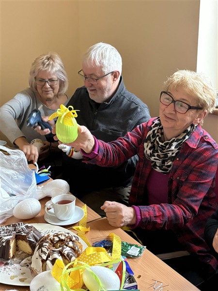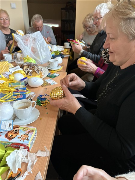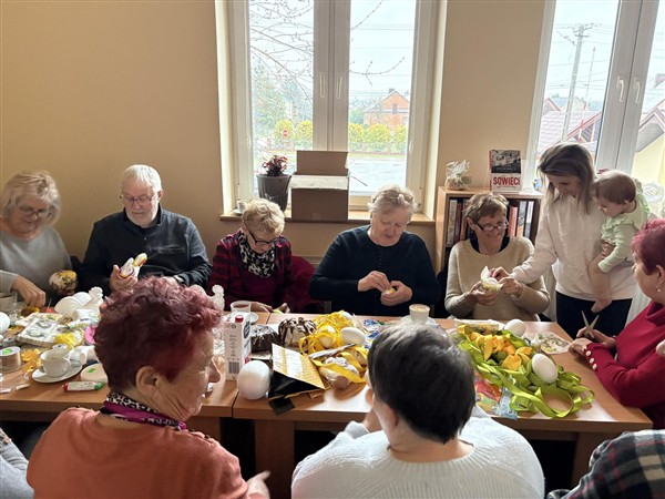 Nie zabrakło też chwili na słodką przerwę – Pani Sołtys Angelina Klara przygotowała do kawy i herbaty pyszne wielkanocne baby, które umiliły to popołudnie. Dodatkowo zadbała o świetną zabawę, przygotowując świąteczne zagadki i quiz, które wprowadziły wszystkich w radosny, wielkanocny nastrój.